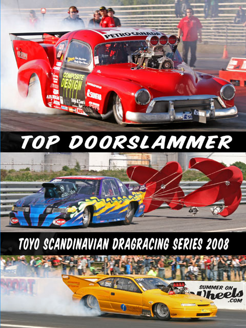 Avsnitten som visats på TV4 Sport. Följ de täta racen och de våldsamma krascherna under Top Doorslammer cupen 2008 där team och förare gör allt för att slå varandra redan på startlinjen. Denna film är ett MÅSTE för dig som älskar riktig metanolluktande action i 380 km/timmen.
